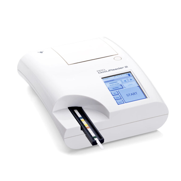 Напівавтоматичний аналізатор DocUReader 2 Pro призначений для зчитування й оцінки тест-смужок LabStrip U11 Plus. Це нове покоління компактних аналізаторів сечі, що дозволяє розташовувати прилад на робочому столі будь-якого розміру та виконувати повний спектр аналізу зразка. Сечовий аналізатор забезпечує просте управління, продуктивність — до 120 тестів за годину, високу економічну ефективність та якість. Прилад має в арсеналі простий і інтуїтивно зрозумілий інтерфейс, автоматичний запуск приладу при розміщенні тест-смужки, вбудований контроль якості та термопринтер. Забезпечує спрощення документообігу – за допомогою LIS-підключення.