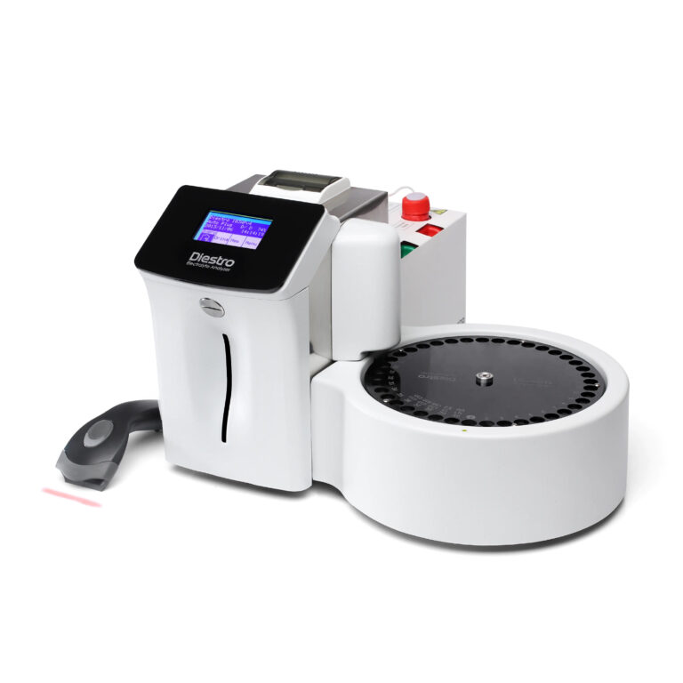 Повністю автоматизований аналізатор електролітів Diestro 103AP Auto Plus- це прилад для in vitro діагностики, що дозволяє вимірювати електроліти у зразках цільної крові, сироватки, плазми та сечі. Виготовлений за найсучаснішою технологією та здійснює вимірювання методом прямого ISE: точний, надійний, простий у використанні та невибагливий в технічному обслуговуванні. Підійде для користувачів з високим навантаженням на лабораторію (більше ніж 50 зразків на день). Він здатний одночасно вимірювати до 5 електролітів: натрій (Na+), калій (K+), хлор (Cl-), кальцій (Ca2+) та літій (Li+) та здійснює автоматичне завантаження зразка – (до 40 первинних або педіатричних пробірок).