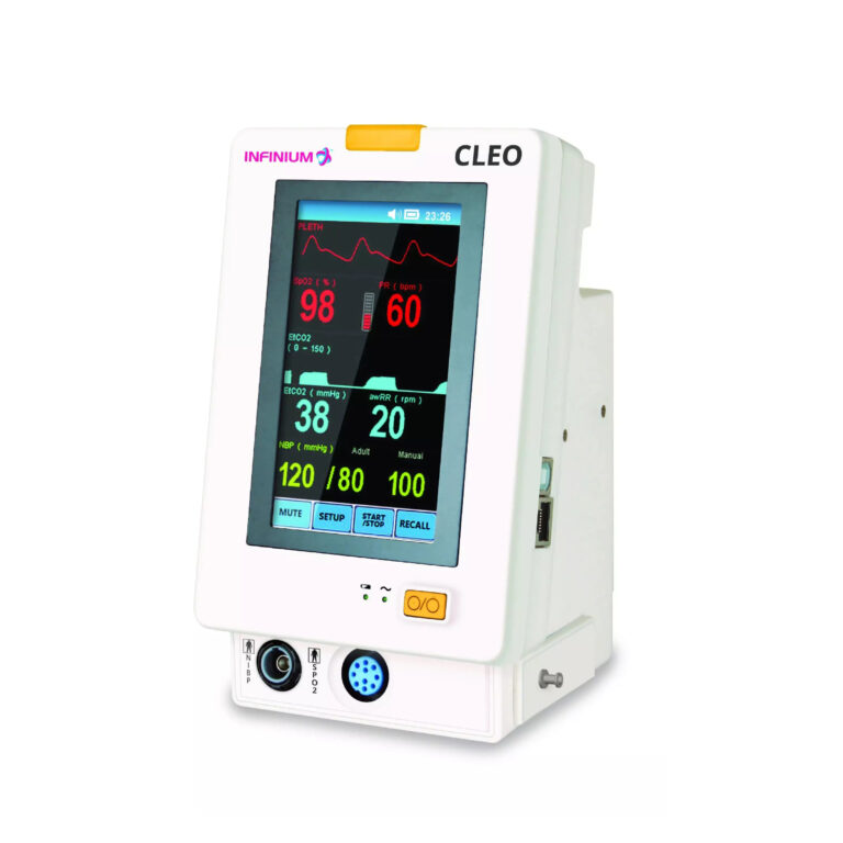 Компактний монітор CLEO з функцією вимірювання життєво важливих показників пацієнтів. Монітор пацієнта CLEO - це комплексна система моніторингу, яка приймає, обробляє, аналізує та відображає дані чотирьох різних параметрів пацієнта. Він об'єднує модулі вимірювання та відображення параметрів в одному легкому компактному пристрої.