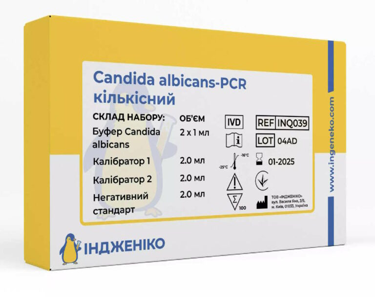 Candida albicans-PCR кількісний – набір для кількісного визначення ДНК геному Candida albicans у досліджуваному зразку. Кількісні PCR набори варто використовувати для відслідковування динаміки перебігу захворювання у пацієнта та оцінки ефективності підібраного лікування.