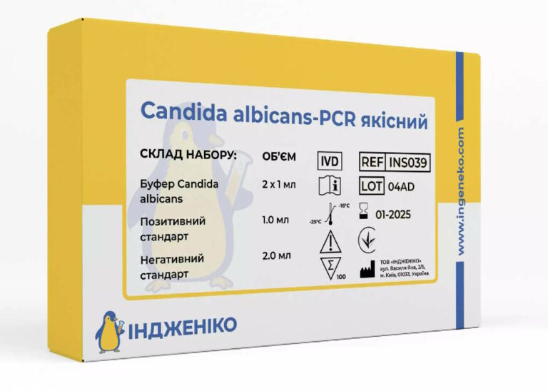 Candida albicans-PCR якісний – набір для якісного визначення ДНК геному Candida albicans у досліджуваному зразку. Якісні PCR набори використовують для визначення факту наявності збудника інфекції у зразку.
